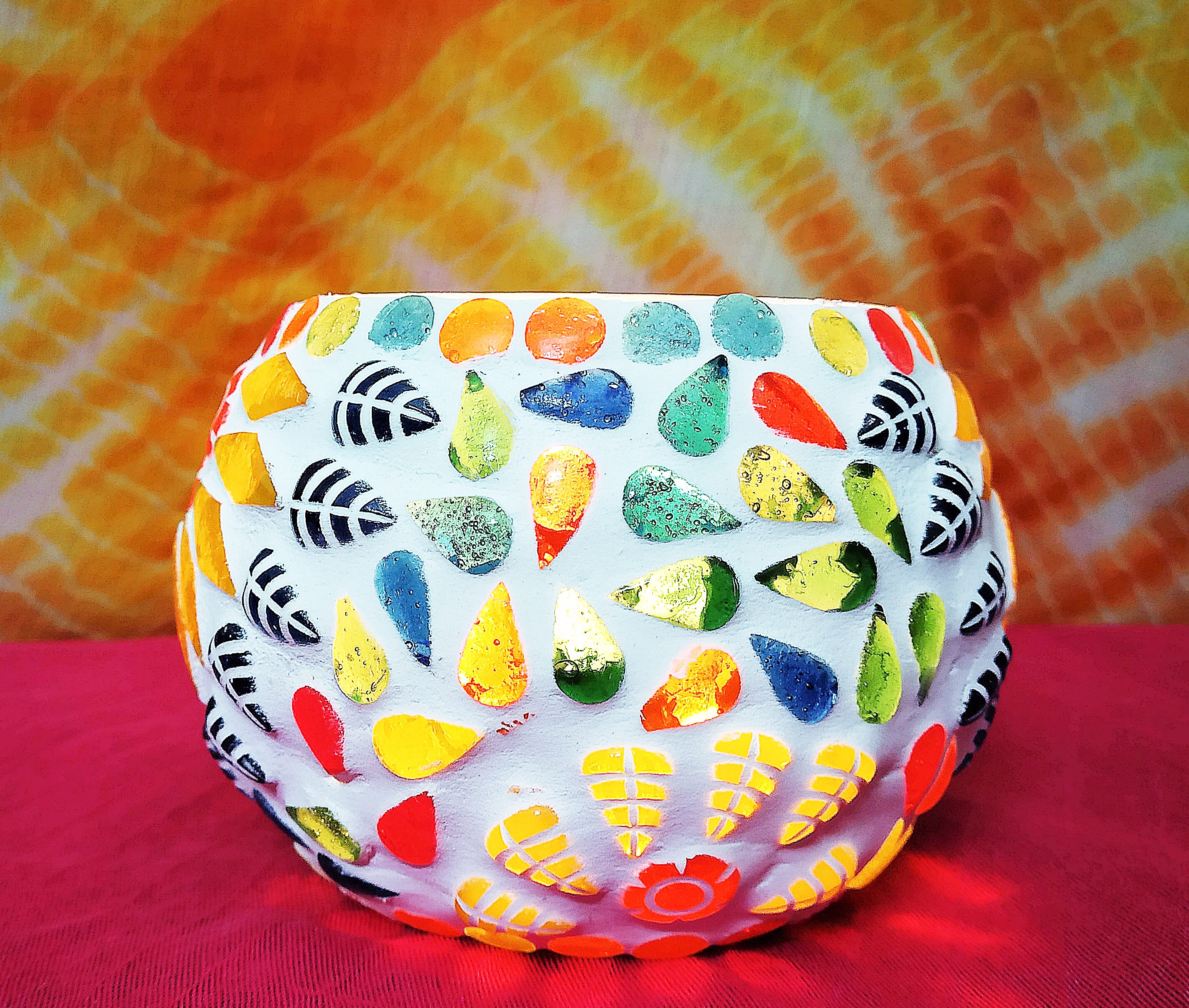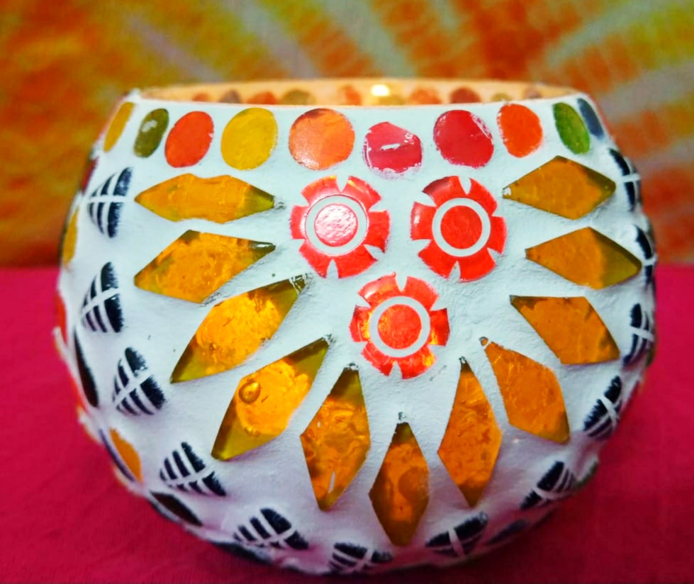 - Light your candle, watch the play of light from this mosaic candle holder which creates a warm ambiance of romantic and breathtaking impact